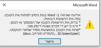 כי זאת שגיאה שמופיעה בד"כ מתי ששם הקובץ אינו חוקי וקריא בתוכנת הוורד.