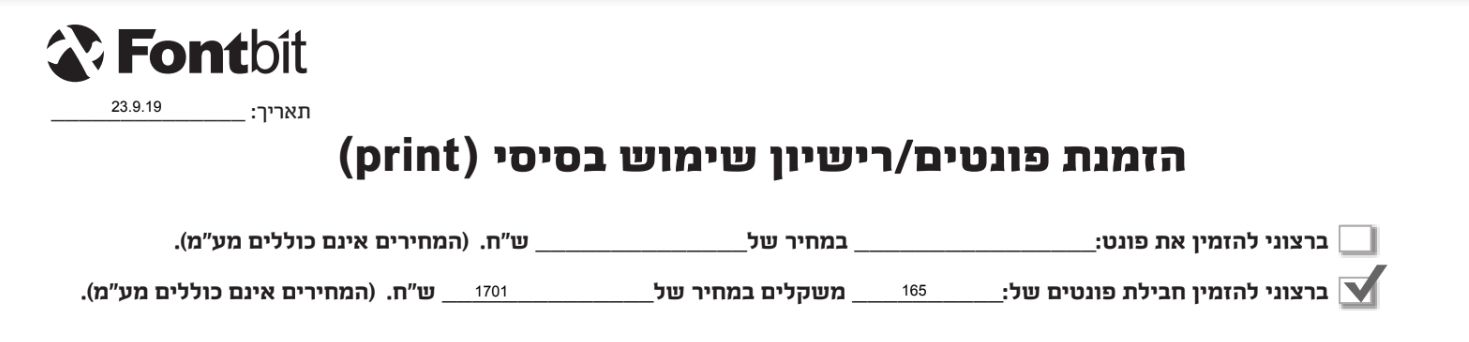 שנתיים זכאות לבחירת הפונטים ( 7.5 ₪ מחיר למשקל)