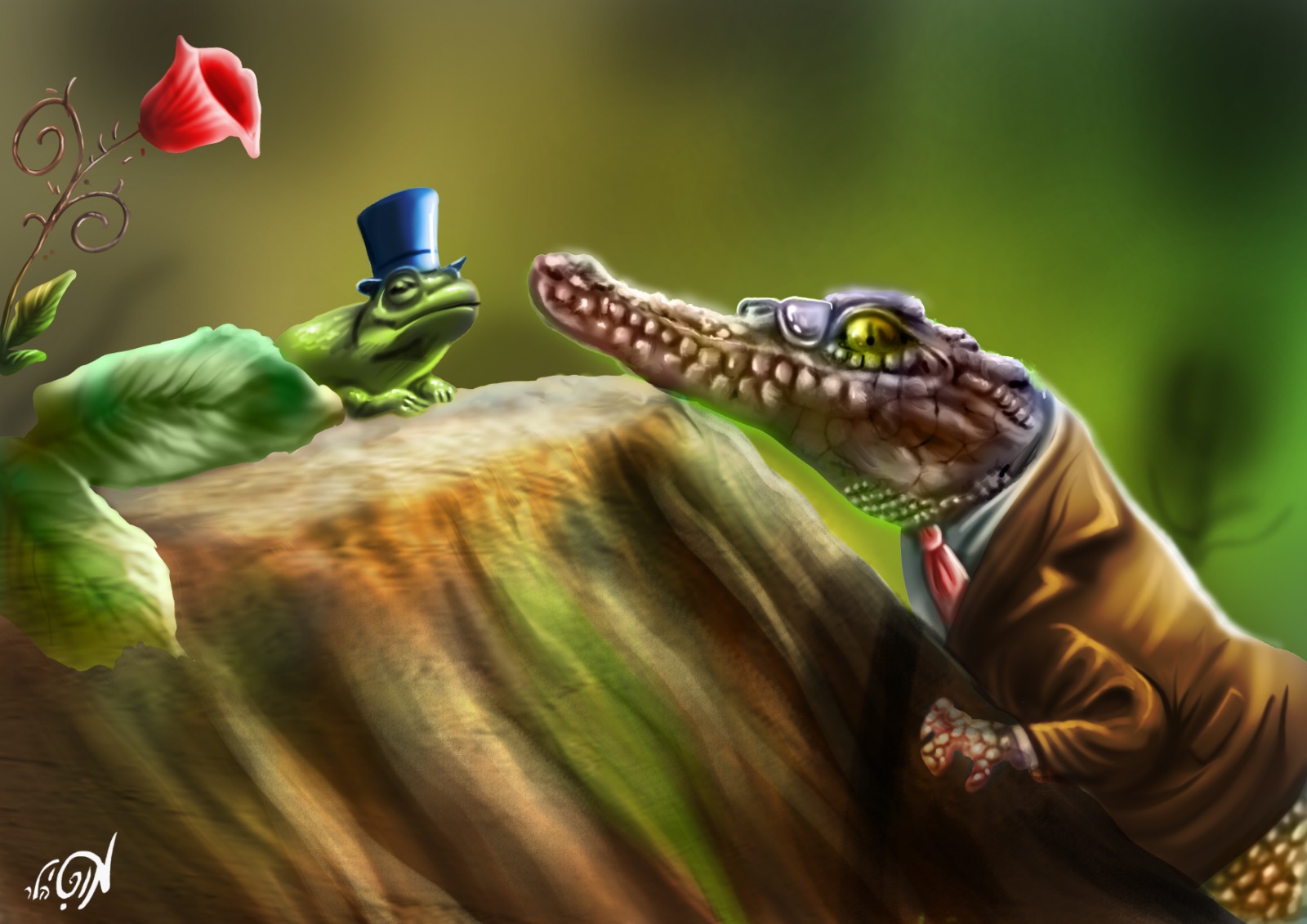 כאשר לצייר מוטי הלר היתה השראה והוא ביקש ליצור דמויות בעלי חיים עם אלמנטים של 'האנשה' הוא בחר בצפרדע ובתנין לגלם את האמנות שקרקרה במוחו.