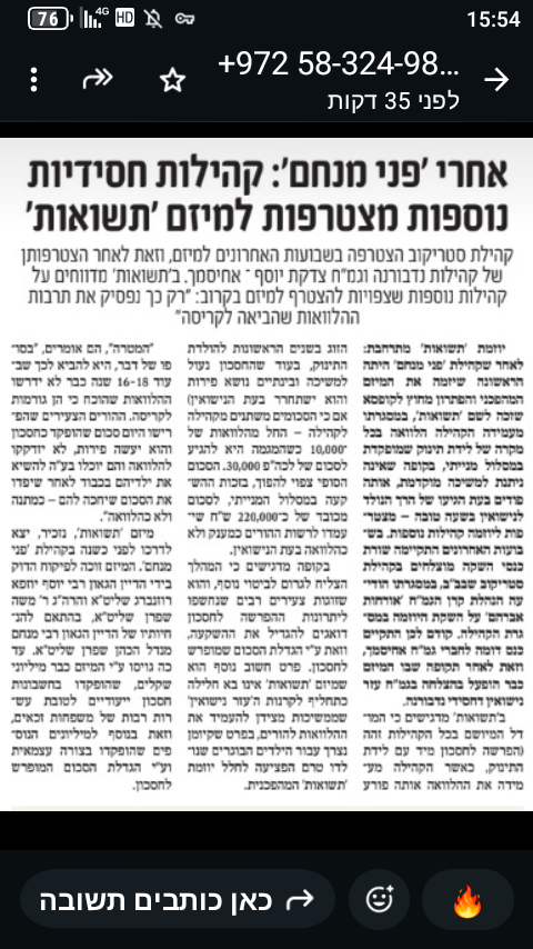 אתמול פורסם מיזם "אפריון" של חסידי ויז'ניץ,