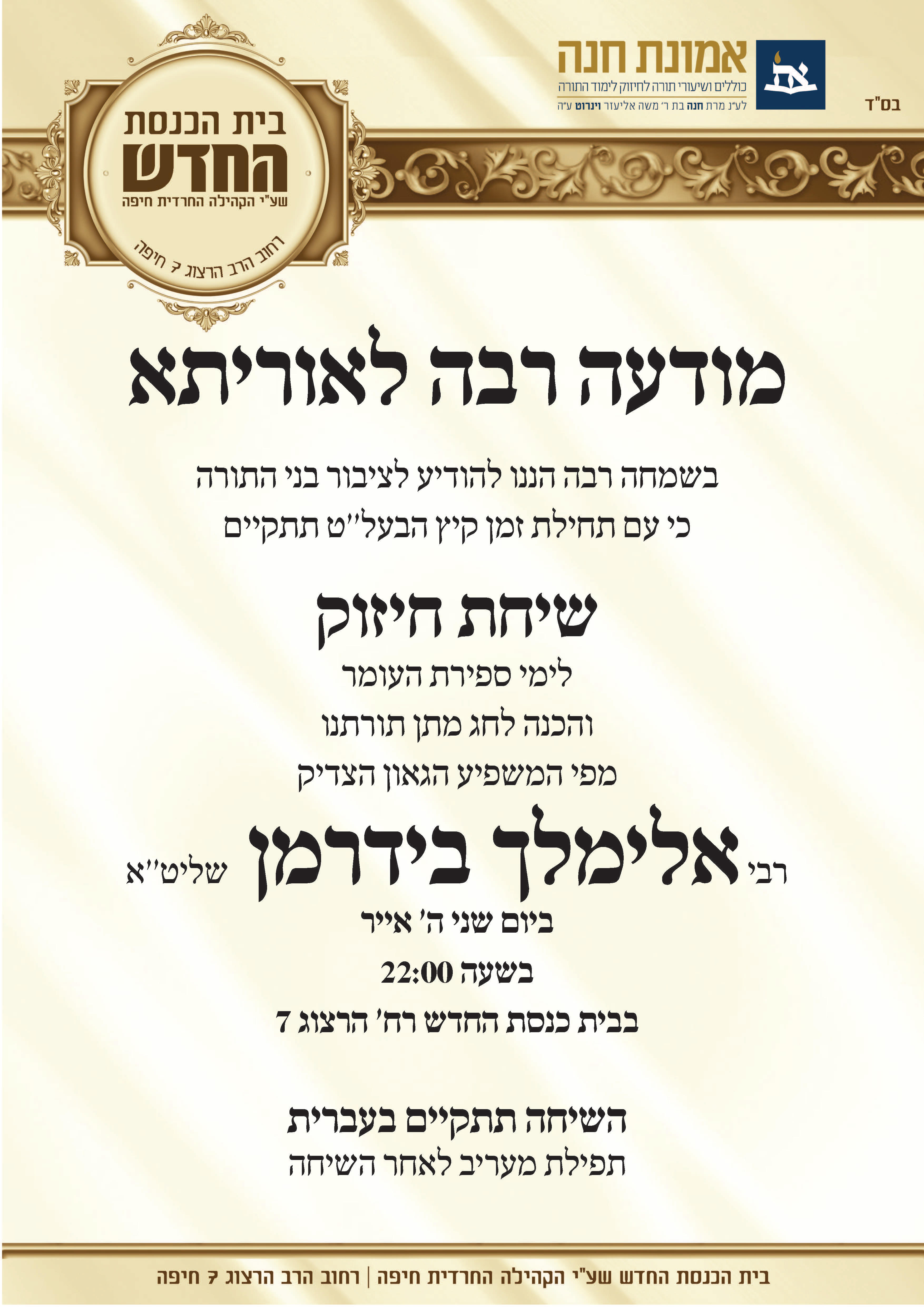 מסיים הוא את סיפורו המרטיט לר' אברהם, כאשר הוא נולד, חרטתי עליו את המילים 'חקת התורה', על מנת שיעמוד לנגד עיני מהיכן החורבן הגיע.