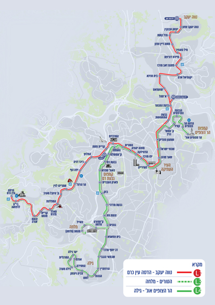 (זה משתנה מעת לעת. לדוג' מצאתי מפה ישנה יותר, שם רשום שהקו ממלחה אמור להסתיים בהר הצופים.