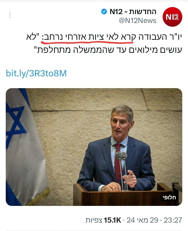 עמית סגל: לאחר טענת יו״ר העבודה יאיר גולן שדבריו הוצאו מהקשרם צפיתי בקטע המלא - אם דבריו הוצאו מהקשרם זה עוד שיחק לטובתו כי הטקסט המלא הרבה יותר רדיקלי מהקטע שפורסם אתמול.הוא נתן את זה כדוגמא, הוא לא אמר שזה מה שצריך לעשות עכשיו.