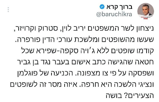 מודבר בשופט ועו"ד שנחשבים אנשים של איילת שקד.