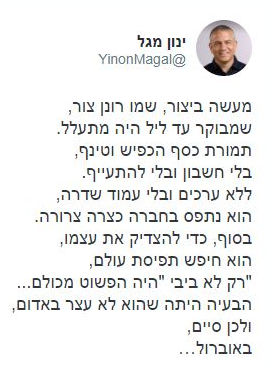 ינון מגל: רביב דרוקר מהקברניטים הראשיים שעל שמם רשום הכשלון של ערוץ 13, טוען הבוקר ב'הארץ' ש"ערוץ 14 משדר פייק ניוז מדי יום ביומו". זה כמובן פייק ניוז, ואני במקום קברניטי ערוץ 14 תובע לו את החיים. שילמד לקח לכל החיים החוצפן הזה.