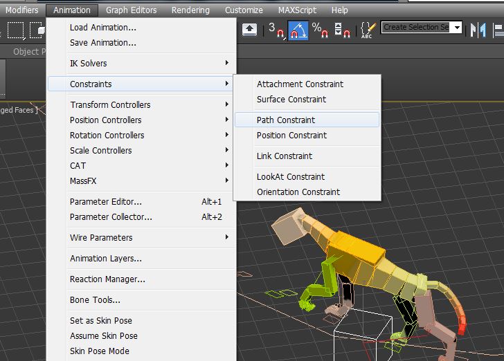 לאנימציה ליצור Dummy לעשות Perent למסלול הרצוי ובתפריט כמו בקובץ המצורף:)