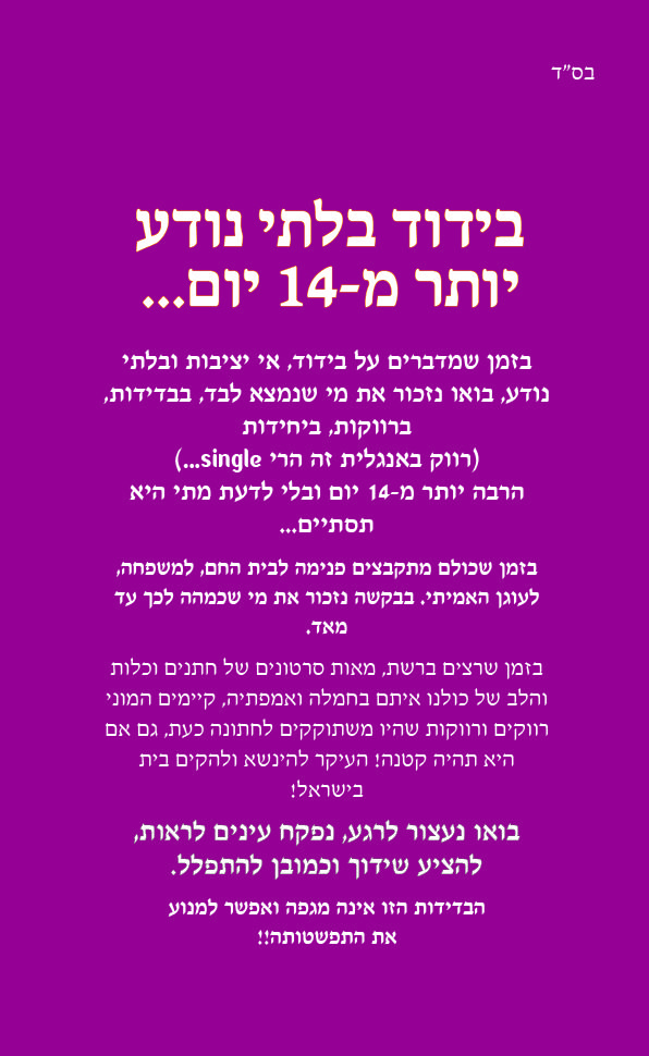 בתור אחד שמכיר מקרוב כמה מעוכבים בשידוכים בגיל מבוגר!!