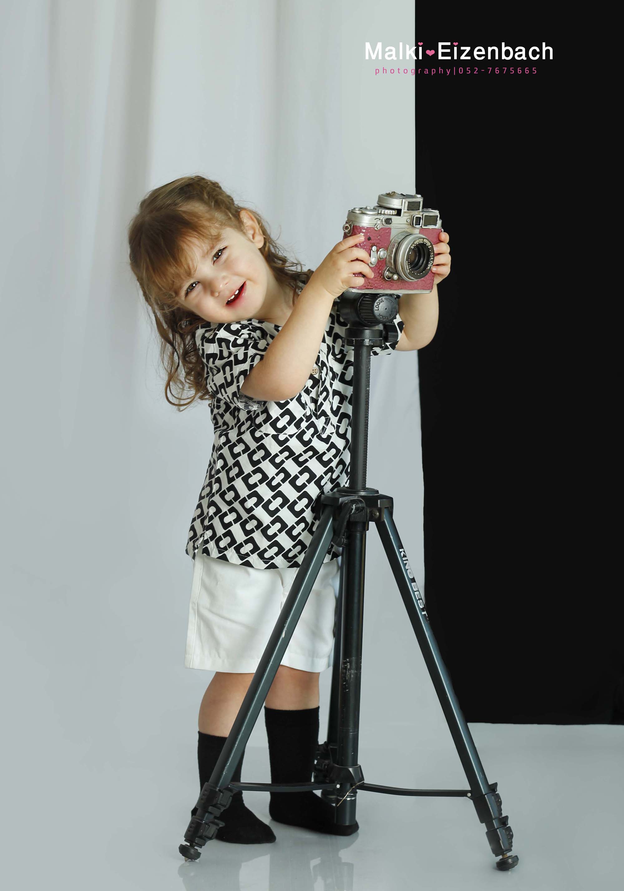 ומורידה את הראש של החצובה כלפי הילד הקטן.