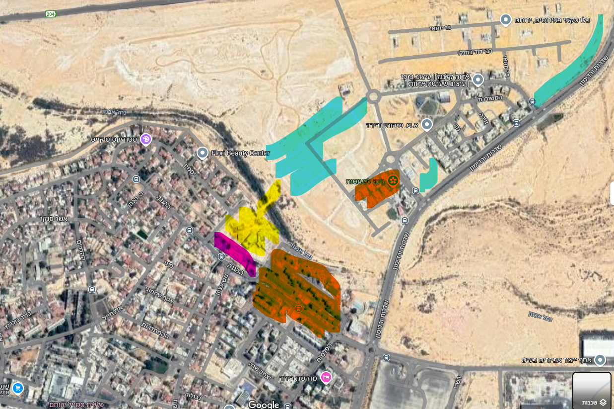 כתום- שכונת אלי הכהן בניינים מסוימים + כ10 משפחות באירוס