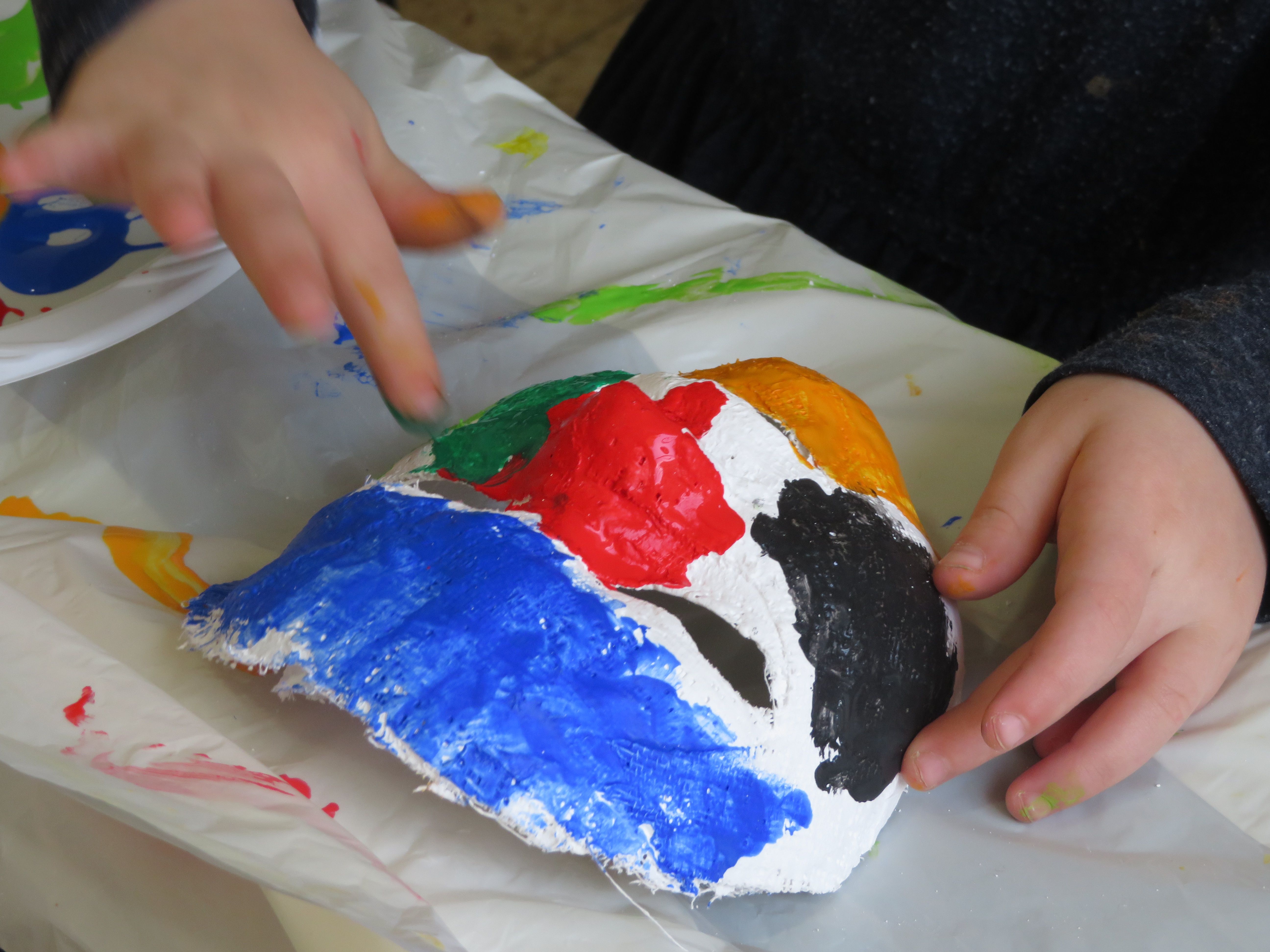 מסכות מתחבושות גבס, וצבענו בגואש.