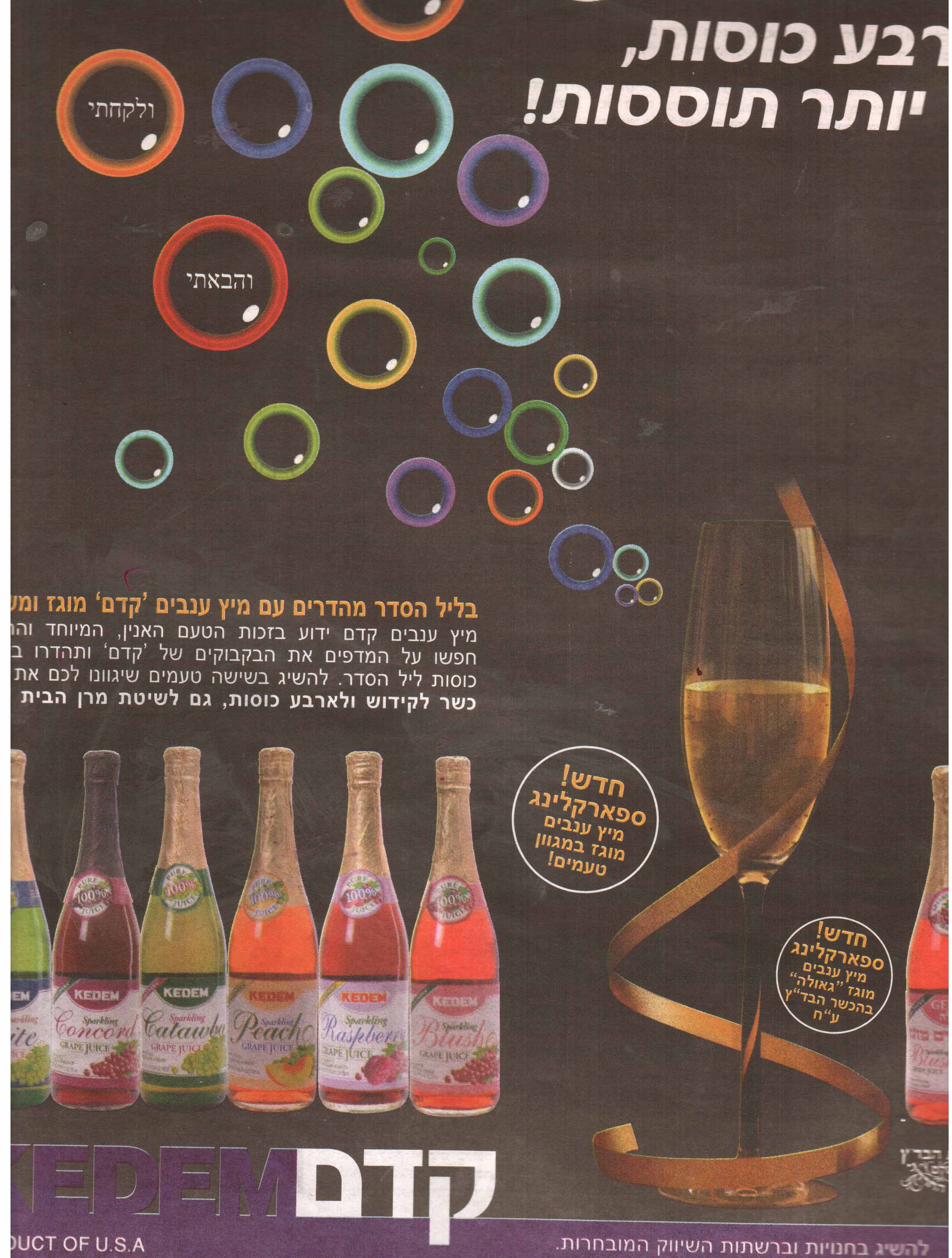 המסר חלש ומוזר מאוד - לכו תשכנעו מישהו להחליך את היין או המיץ המסורתי במשהו בטעמים. ועוד בפסח.