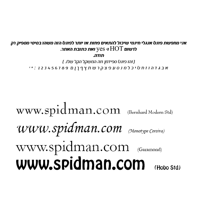 פונט התאמת פונט לועזי חינמי לפונט ספידמן