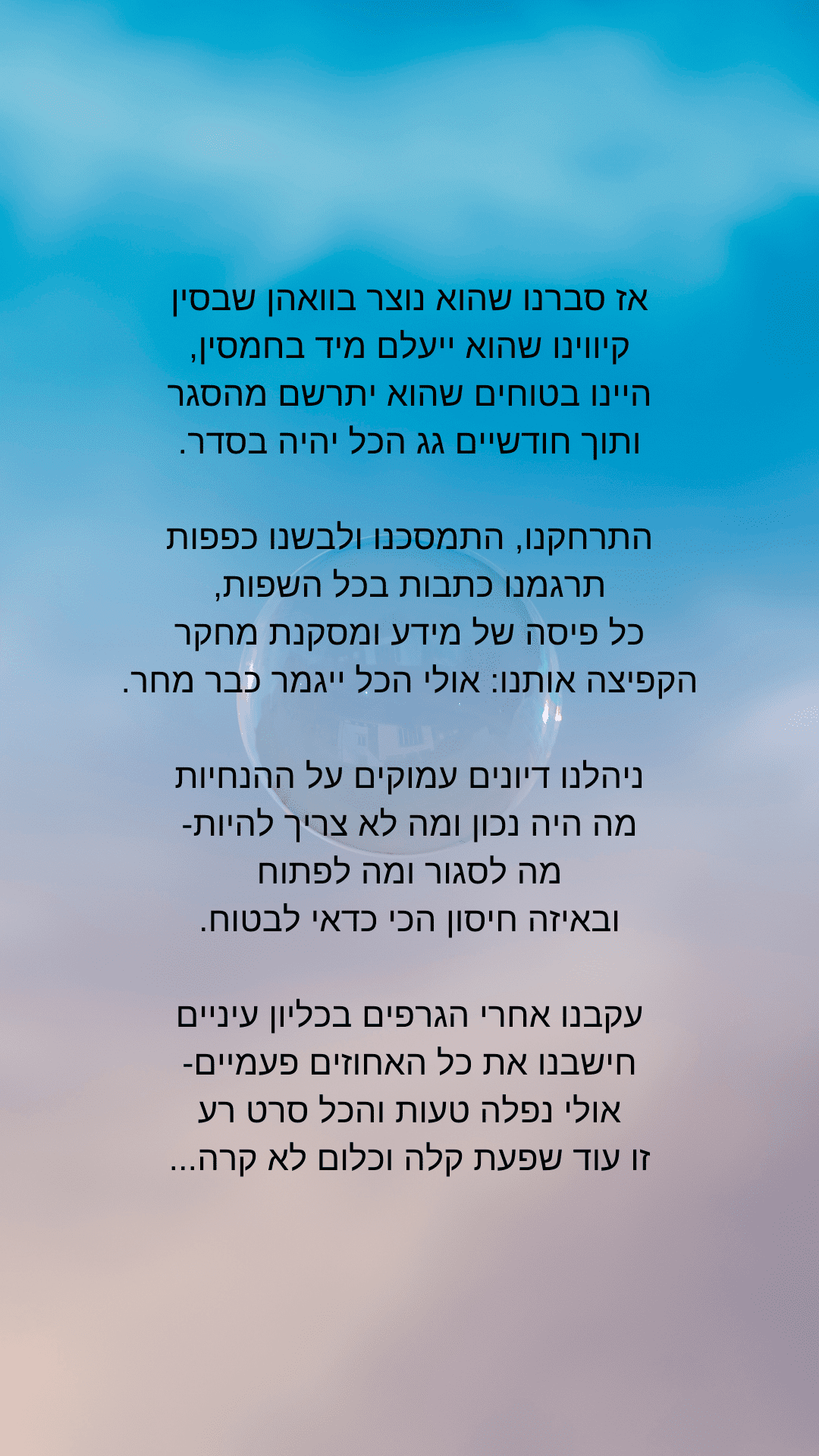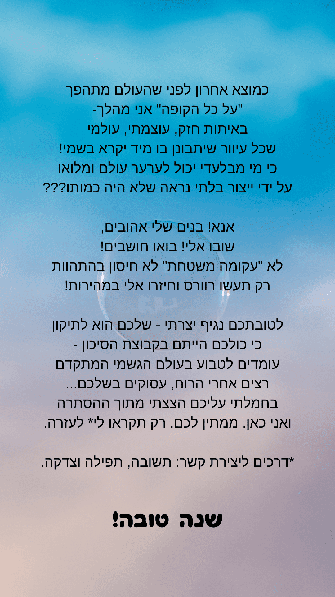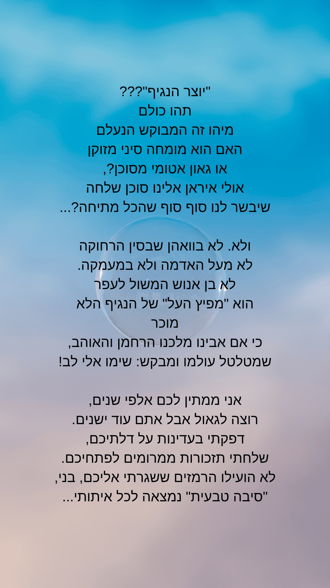 משהו שהראיתי לו שאל אם אפשר להפיץ. כי הוא חושב שזה מצווה גדולה שאנשים לא דתיים יקראו את זה!
