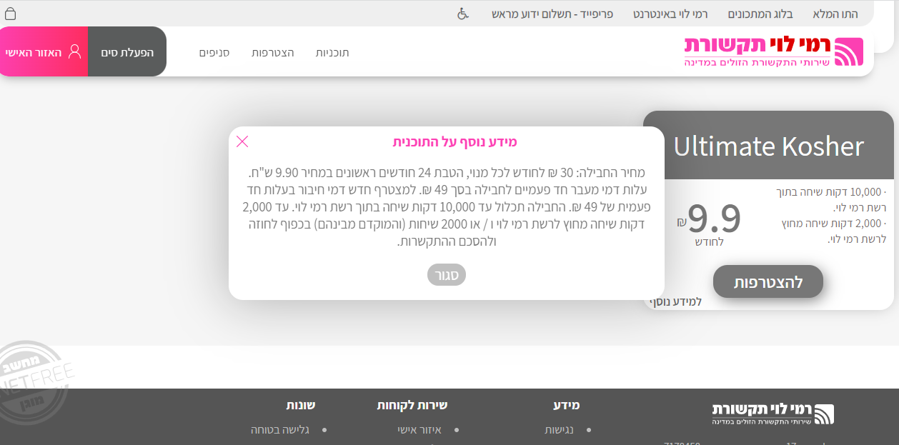 מי שיש לו קו ברמי לוי, שיזדרז לעבור לתוכנית של 9.9 ש"ח לחודש.