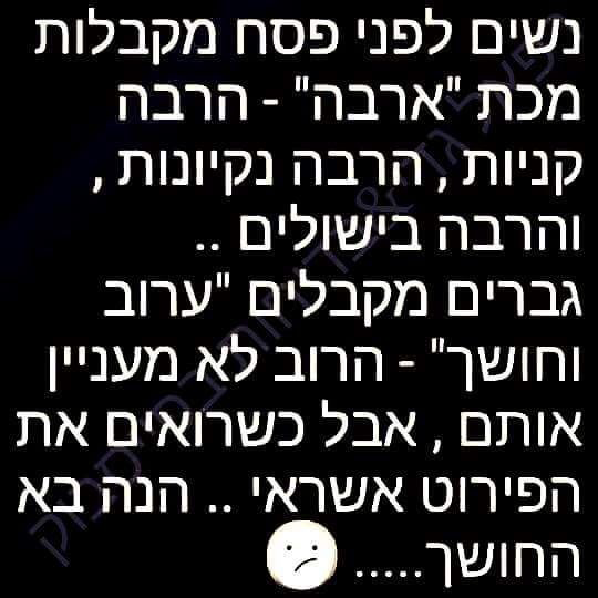 לא נכנסתי להוצאות המטורפות שקצת עוברות לידכם. למה שתקנו מצות יין או חסה או נייר כסף לציפוי המטבח