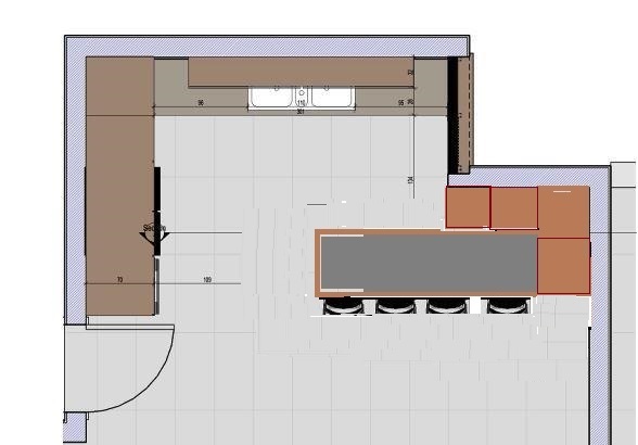 מצרף סכמה של תכנון בסיסי של המטבח, אשמח לקבל כל הערה והארה על החלוקה הנוכחית ו/או אופציות נוספות.