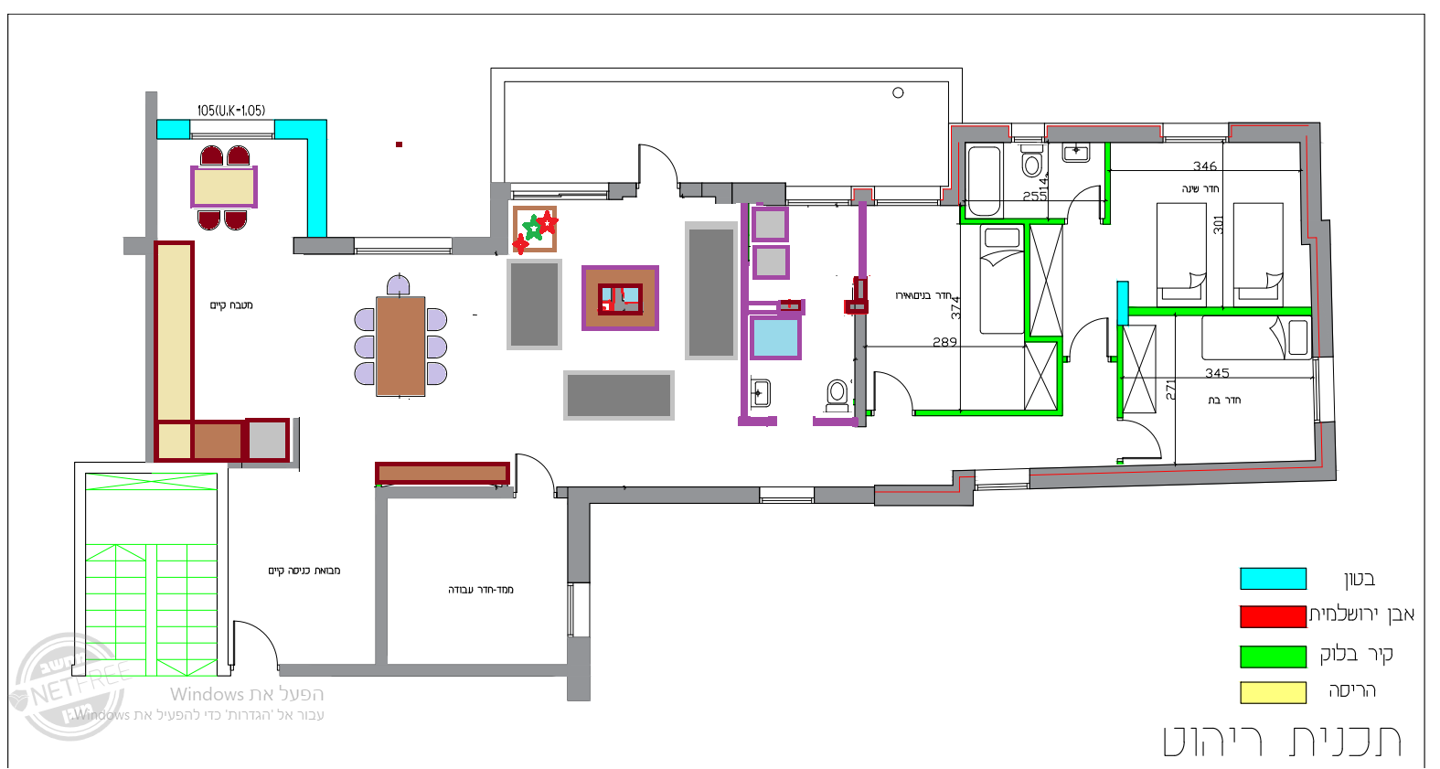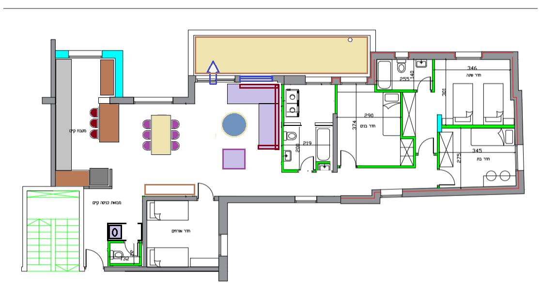 באיזור השירותים והכביסה וגם הפינת ישיבה בכלל לא עובד בפרופורציה של הדירה וגם הספות לא משורטט בקנ"מ נכון ולא הייתי ממהר להתיאש מהאופציה שהצעתי --איפה נמצא ה4 צול ? -- אולי אפשר עם חשיבה יצירתית לשלב את העמוד בעיצוב הכללי
