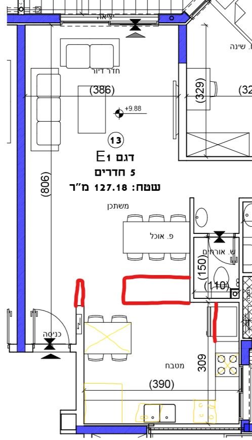 מצ"ב התכנית + אופציה ראשונית לשינוי של המטבח שחשבתי עליה.