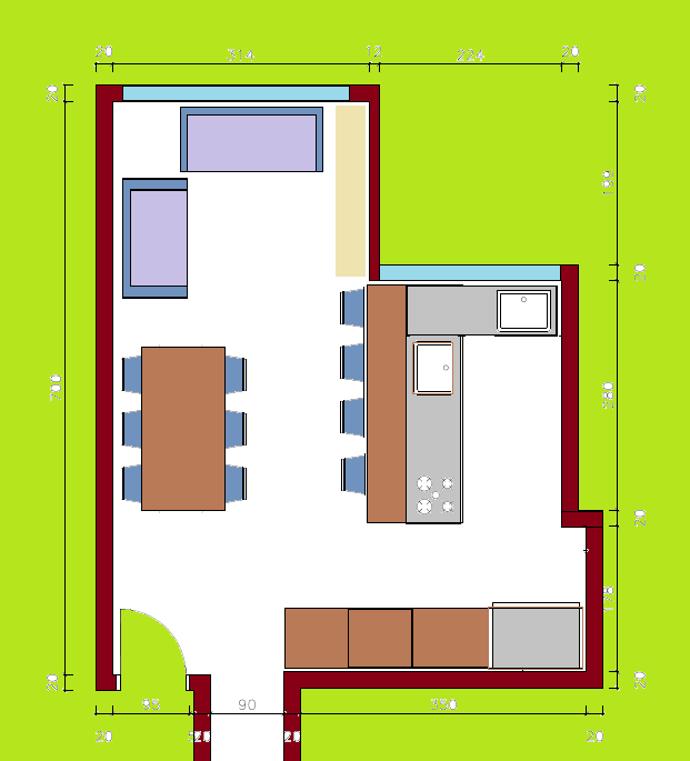 צריכה להכניס פה ספריה+ שולחן אוכל/אי ל4 אנשים + ארונות גבוהים(מקרר ותנור מינימום)