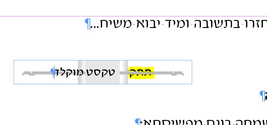 נמצא מתחת לאובייקט ואינו נראה לעומת טקסט רגיל שמופיע מעליו.