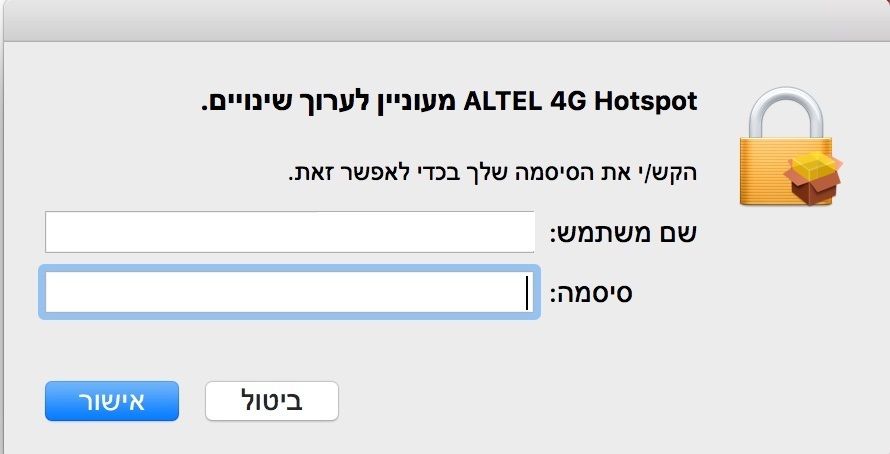 בלחיצה כפולה עולה הודעה המבקשת להכניס שם משתמש וסיסמא כרגיל: