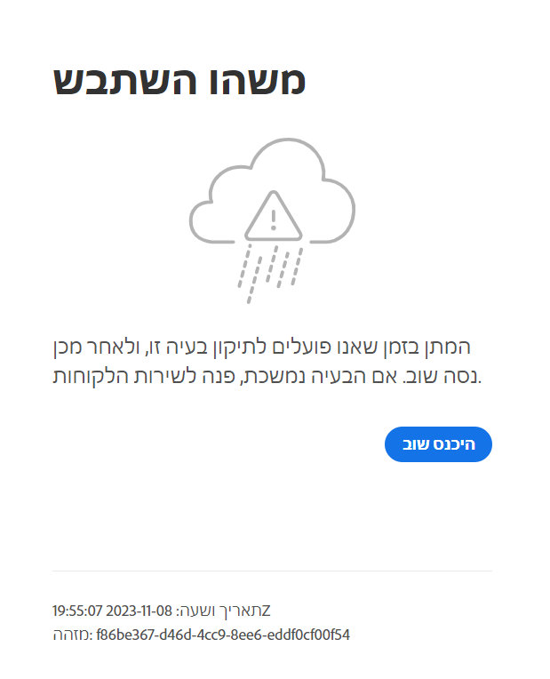 תנסי כמה פעמים. אם זה לא עוזר תצרי קשר בתמיכה של אדובי. יש להם מענה ותמיכה די מהירה