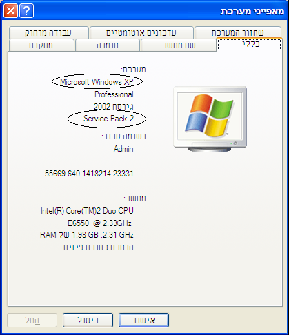 לחצן ימני על 'המחשב שלי', מאפיינים. לחילופין, לוח הבקרה-מערכת.