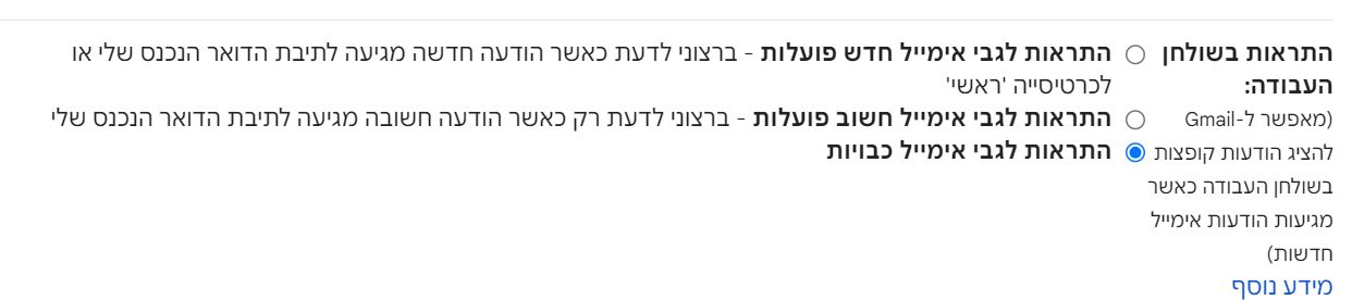 אני רוצה לקבל התראות על כל מייל שמגיע לחשבון אחד בלבד.