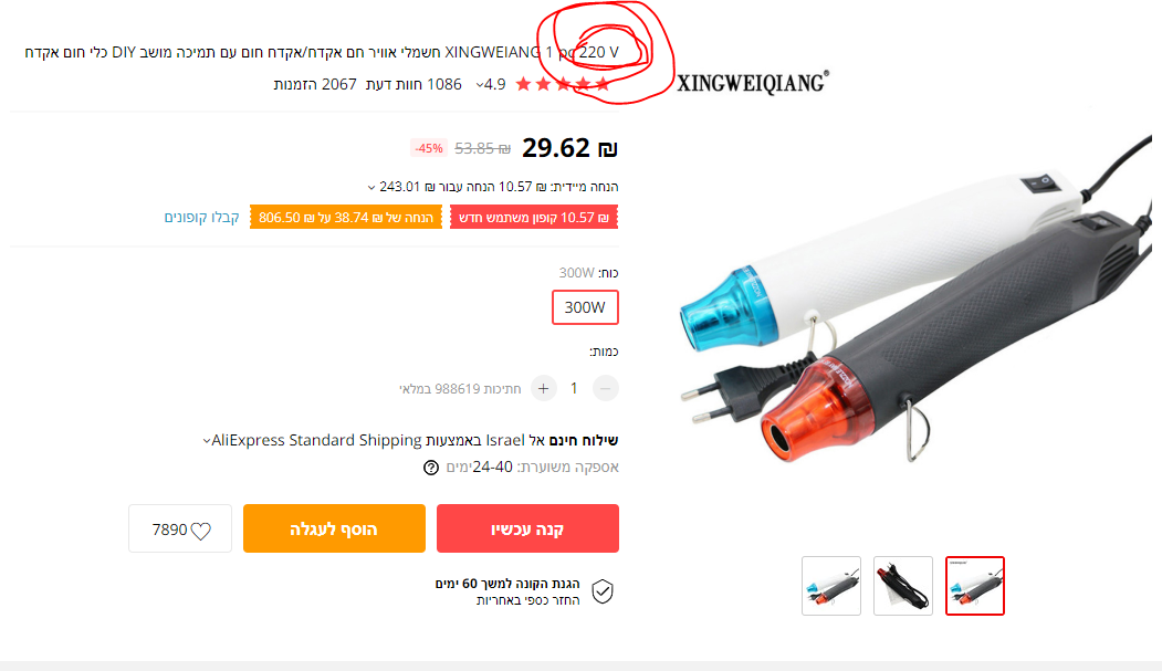 אף פעם לא קניתי מוצר חשמלי מחו"ל. לכן טוב שאמרתן.