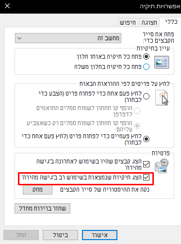 (תצוגה > אפשרויות > אפשרויות תצוגה)