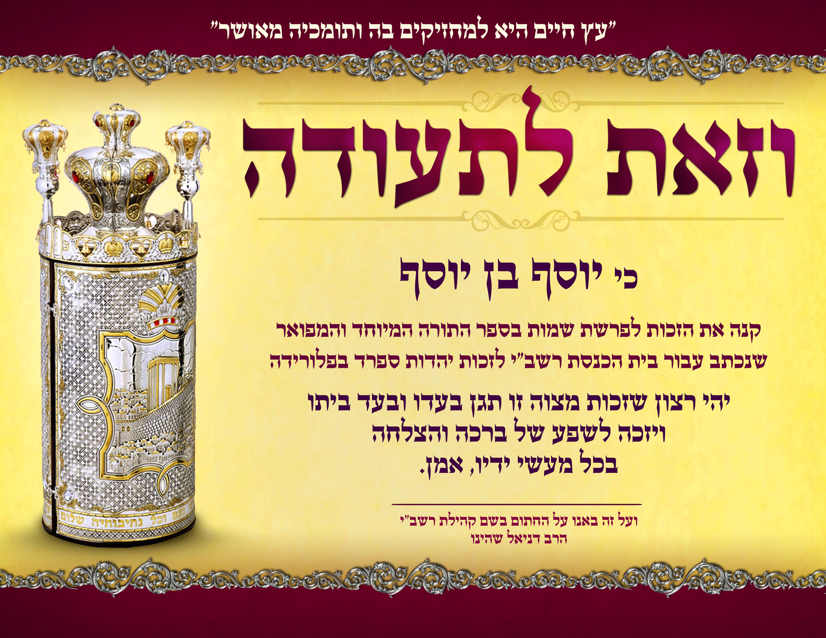 כללי וזאת לתעודה - ספר תורה