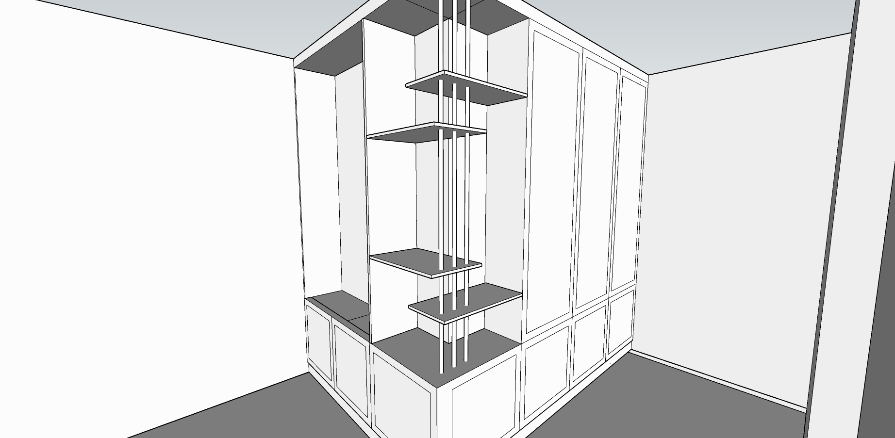 היא רוצה לשים את הפמוטים במדפים הפתוחים (סמנתי באדום) אבל בגלל שהם כסף, היא רוצה לסגור את זה בזכוכית ויטרינה כדי שלא ישחירו במהלך השבוע.
