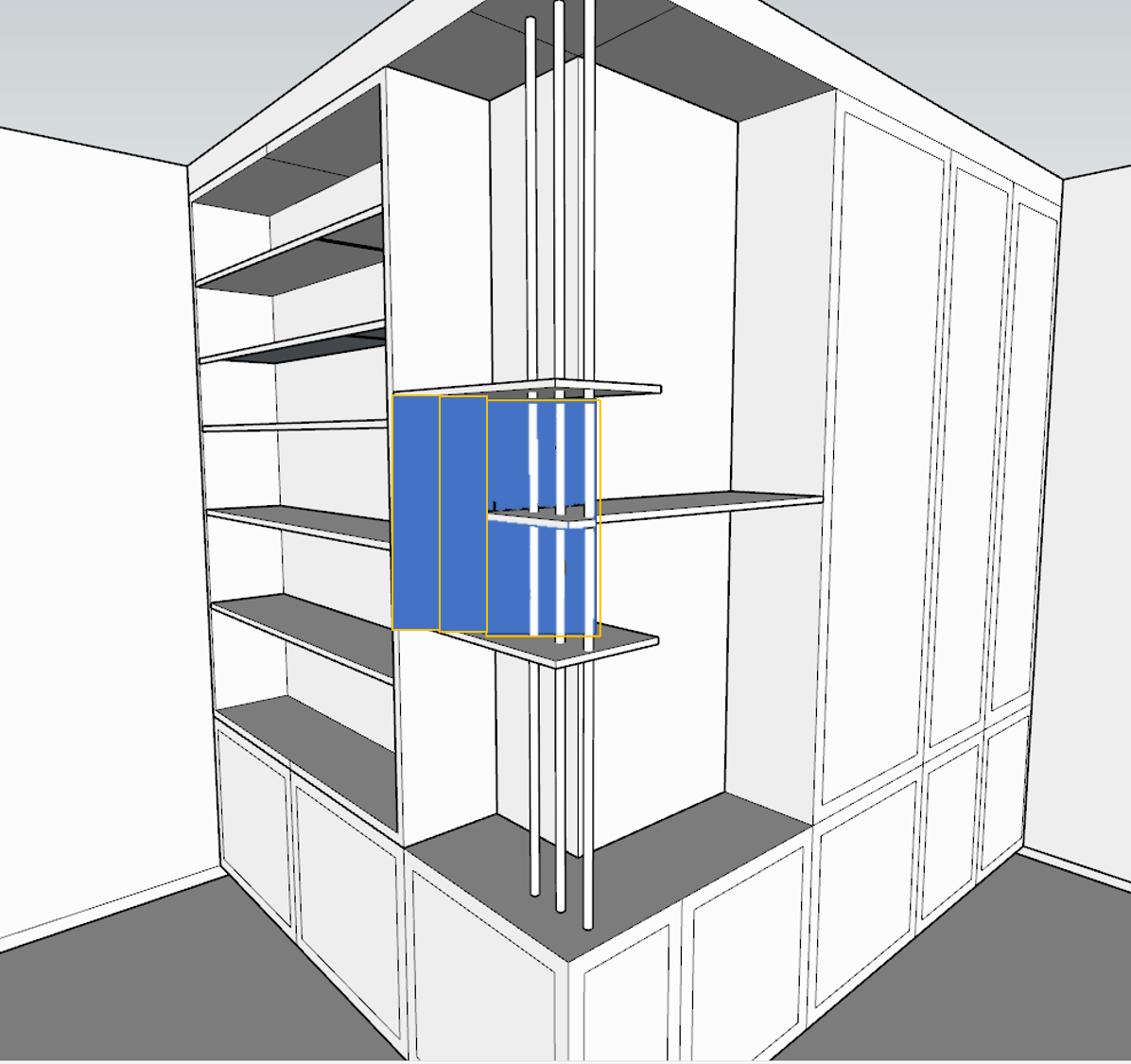 האם יש איך לסגור בלי לסגור את כל הפינה הפתוחה. (היא רוצה מדפים פתוחים)