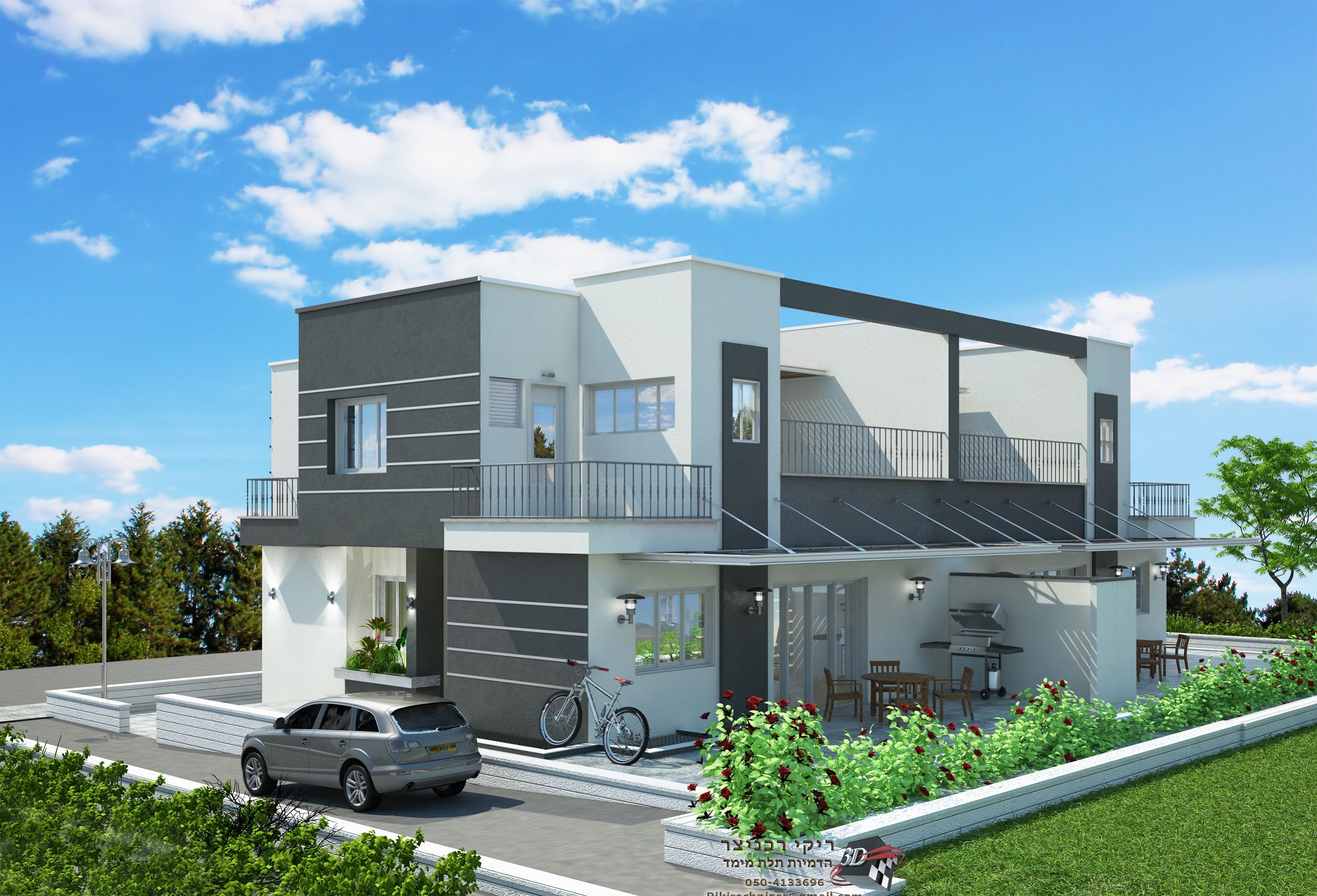 הדמייה לווילה דו משפחתית, הלקוח מתלבט בין שני עיצובים, (בפרונט):eek::confused::eek::confused::confused: