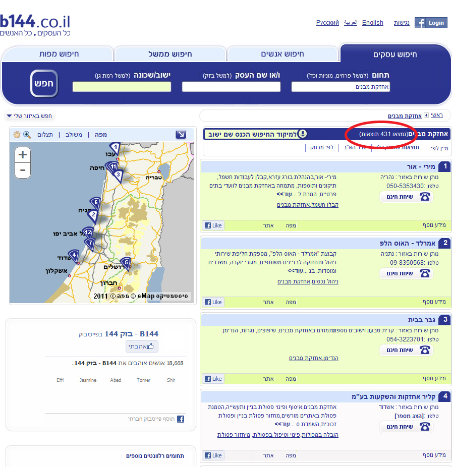 שיניתי את החיפוש ל"אחזקת מבנים", וקיבלתי 431 תוצאות בכל רחבי הארץ.