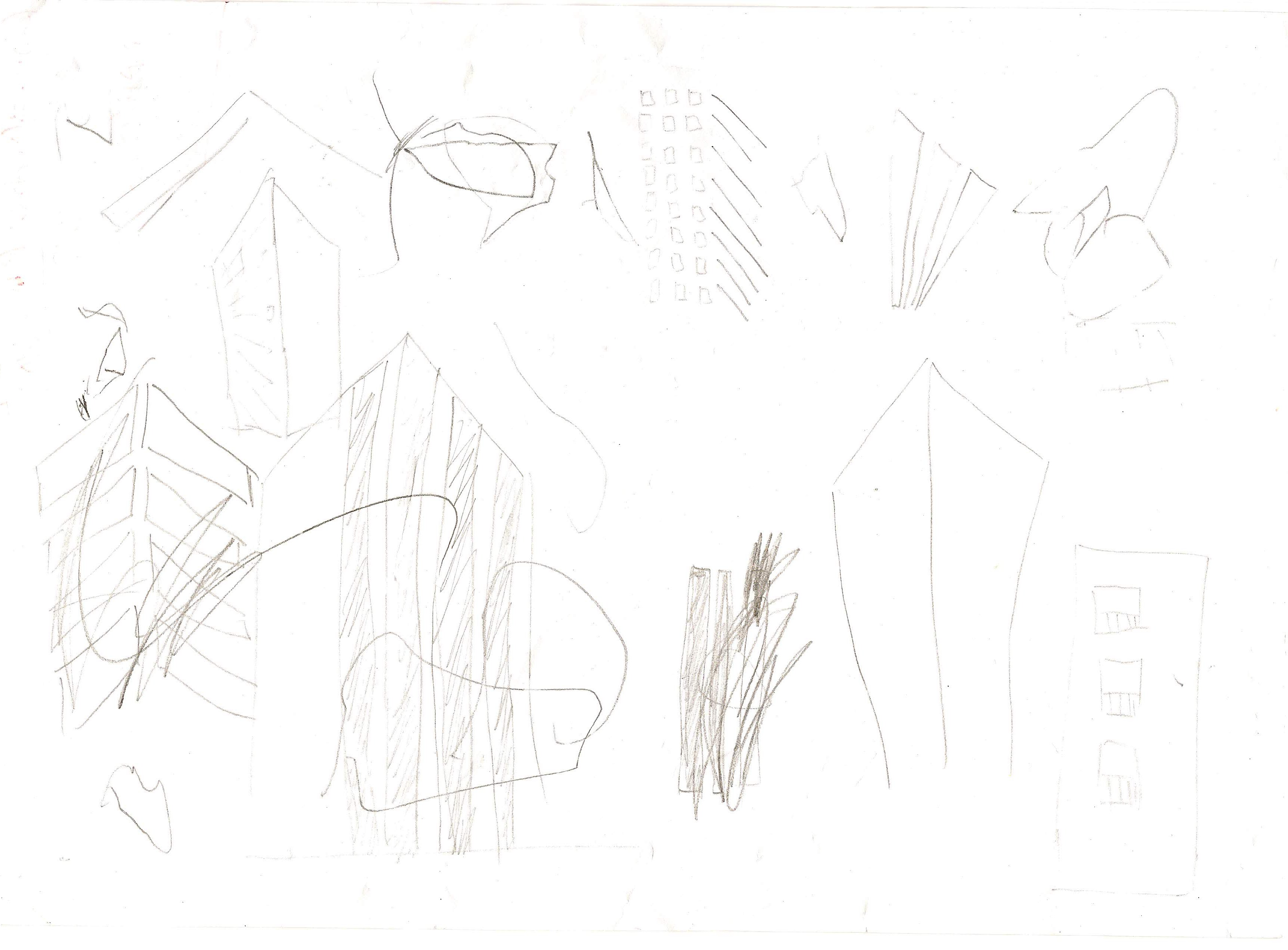 חדי העין שביניכם יבחינו מייד שיש סקיצות נוספות על הדף, מלבד "הבית הפרטי עם הגג האדום".