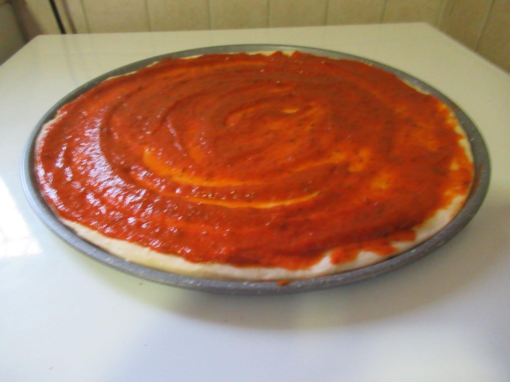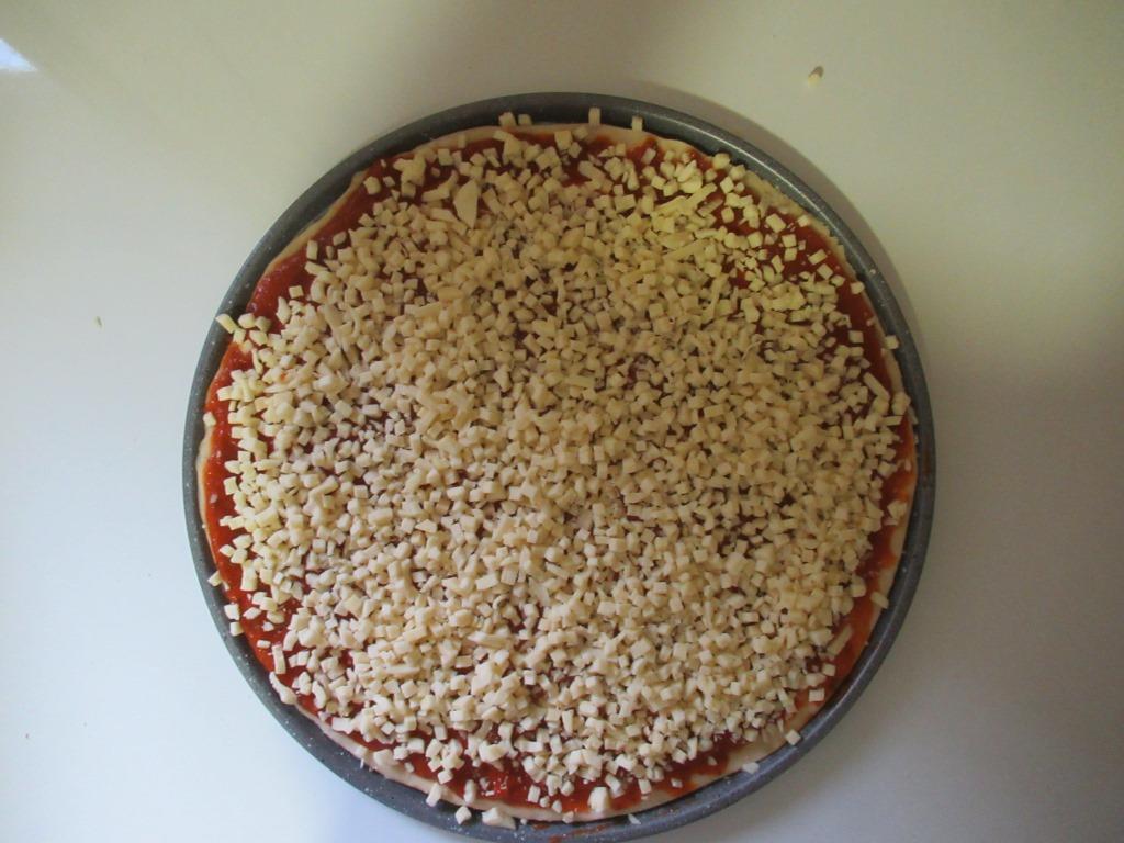 מורחים רוטב פיצה ומפזרים גבינ"צ.