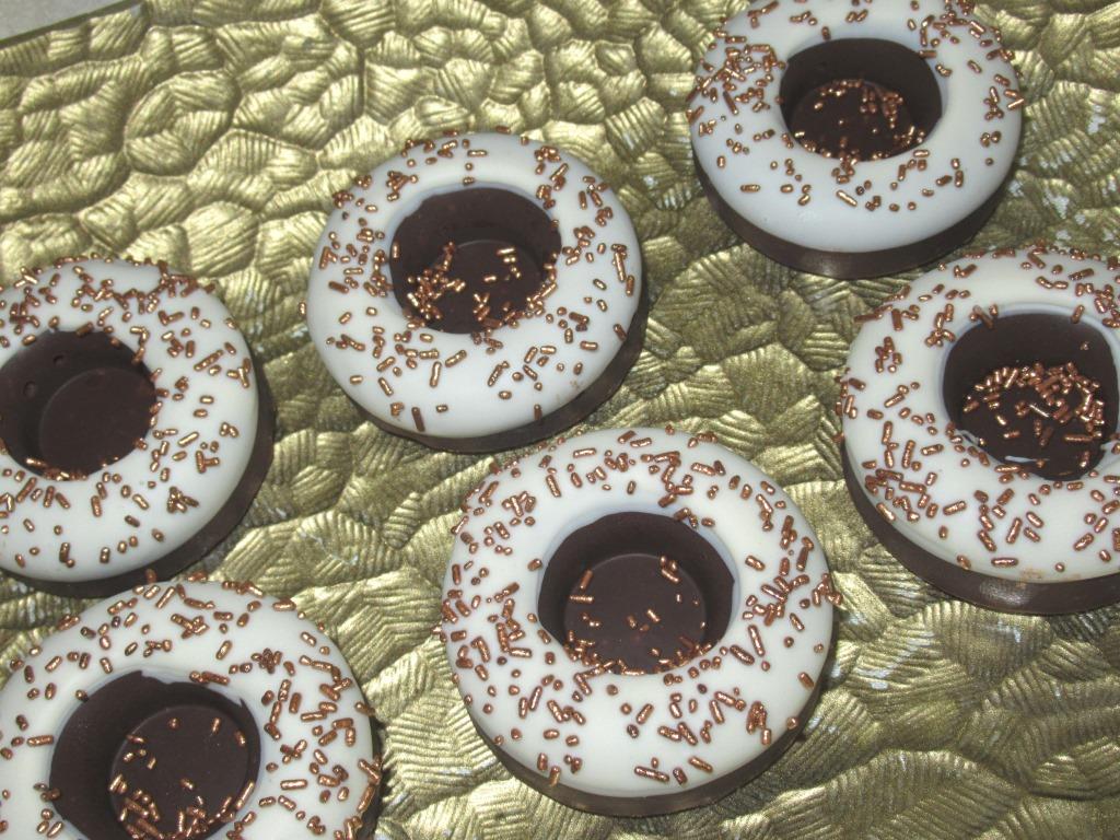 אחרי שנמס תופסים "דונאט" אחד בחלקו התחתון וטובלים את החלק העליון בשוקולד הלבן.