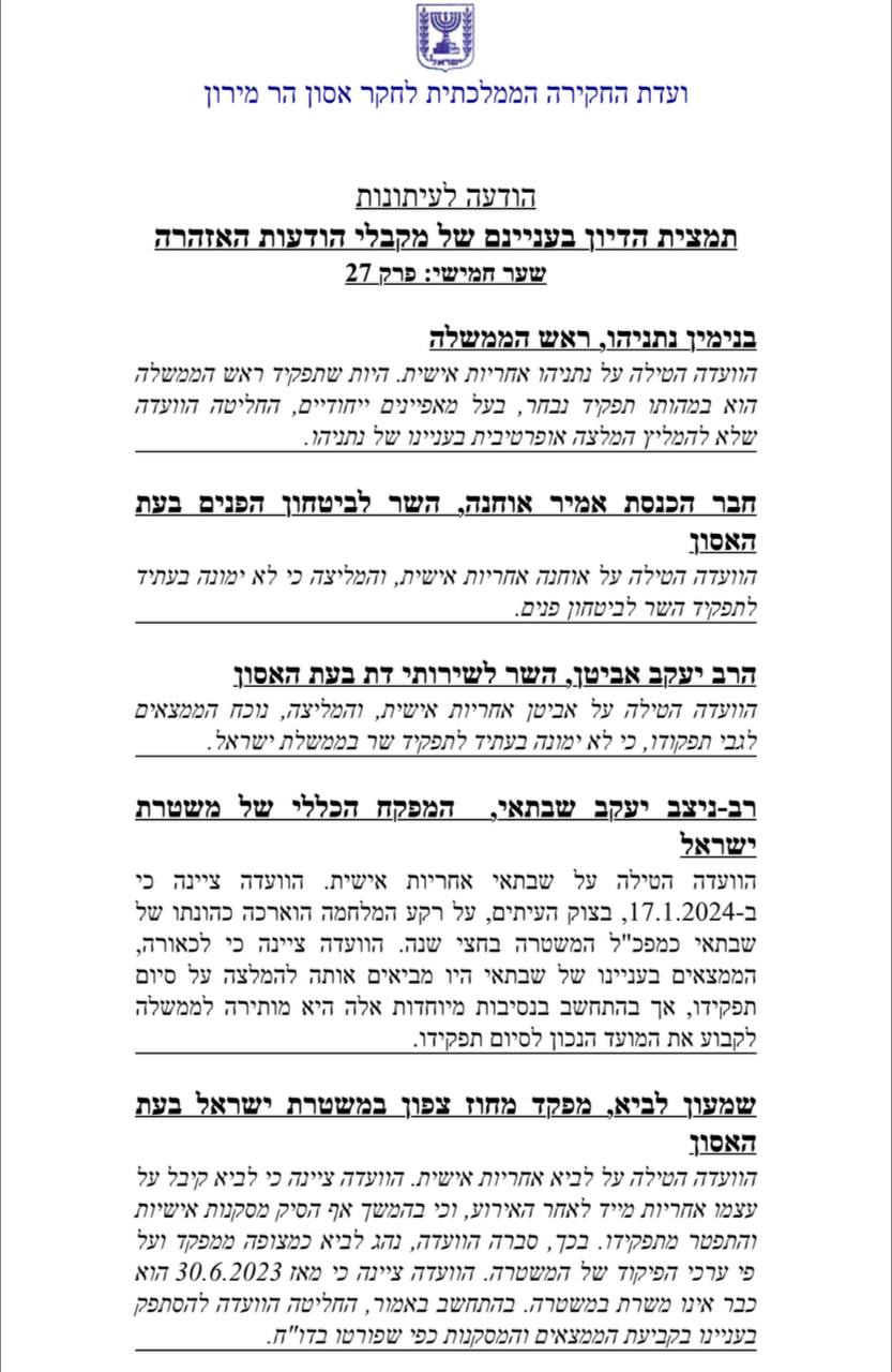 מסקנות הוועדה במלואם