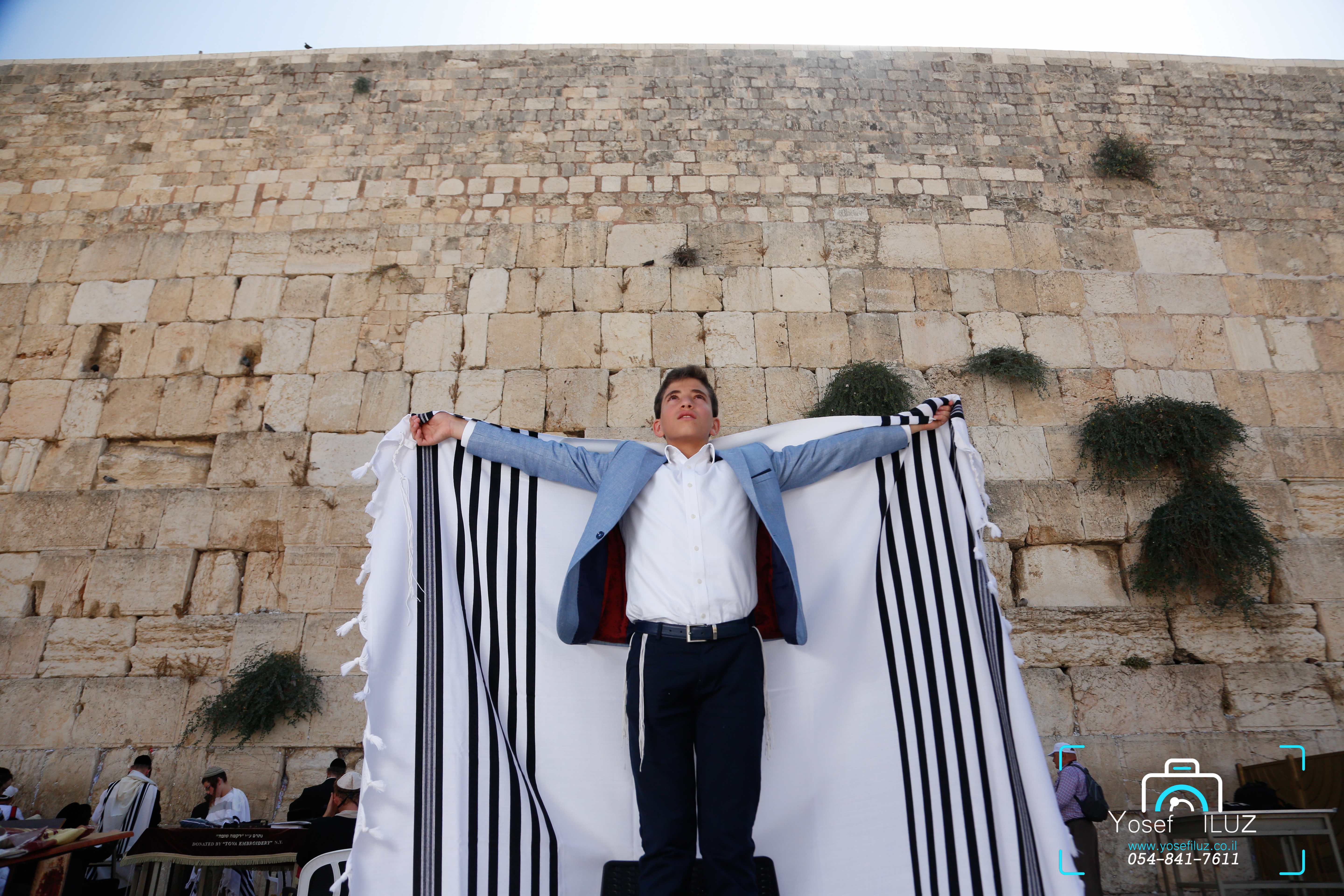 העמדתי את החתן על הכיסא כמו שניתן לראות ישבתי על הרצפה הורדתי את המצלמה כמה שיותר למטה על מנת ליצור תחושה של גובה העמדתי על הגבול של הסוף של הכותל כדי לקבל קצת את האור של השמש ו...קליק....כן לא ערוך בפוטושופ כי פחות אוהב את זה ..