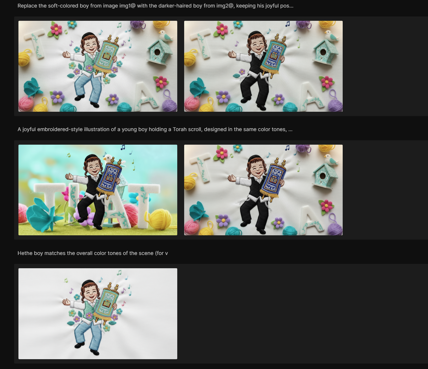 התמונות מפריפיק\ הנפשות הקליפים בקלינג+צאט GPT (הוראות ודרישות מורכבות לדוג פה: Frame 1: The boy is dancing in the center of the synagogue with the Torah scroll. Men in black suits and hats dance around him in a circle. The camera is close on the boy.Frame 2: As the boy jumps joyfully, the camera slowly begins to zoom out, revealing more of the circle around him.Frame 3: The men continue dancing and clapping, moving rhythmically in a circle. The camera makes a very gentle pan to the right, following the movement of the circle.Frame 4 (End): The circle spins with joy around the boy. The camera finishes zooming out slightly, giving a full view of the synagogue with the dancers, then holds still to emphasize the celebration. קלינג מבין ועובד הרבה יותר מדוייק וקולע ובפעם הראשונה)