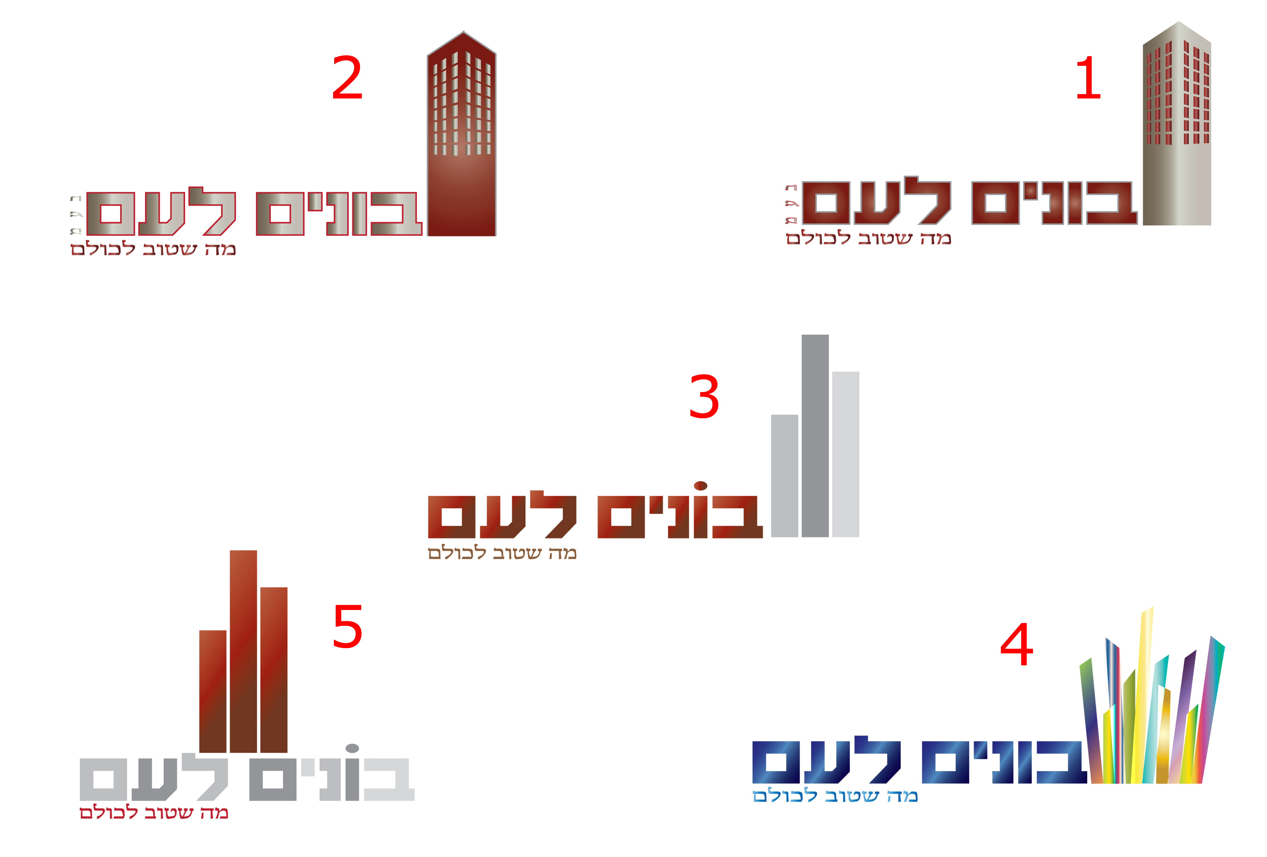3 או 5, ותחליף את הפונט של הסלוגן לאותו פונט של "בונים לעם", וצבע אחיד לטקסט של 5.