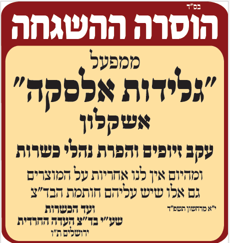 למען הסדר באשכול זה נעלה עדכונים בנושא כשרות.