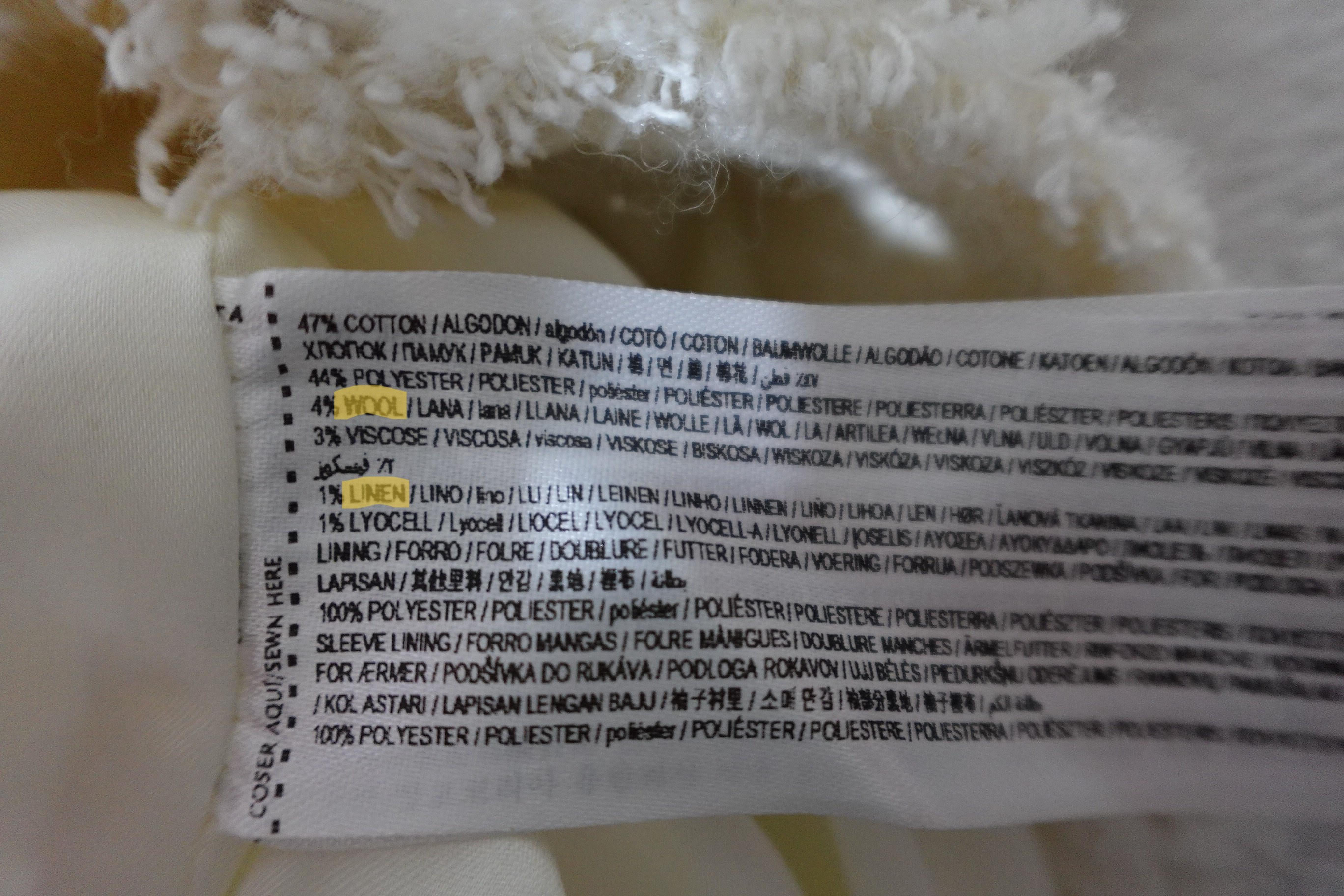 נמצא שג׳קט של MANGO (מאחת העונות האחרונות) מכיל צמר ופשתן יחד.