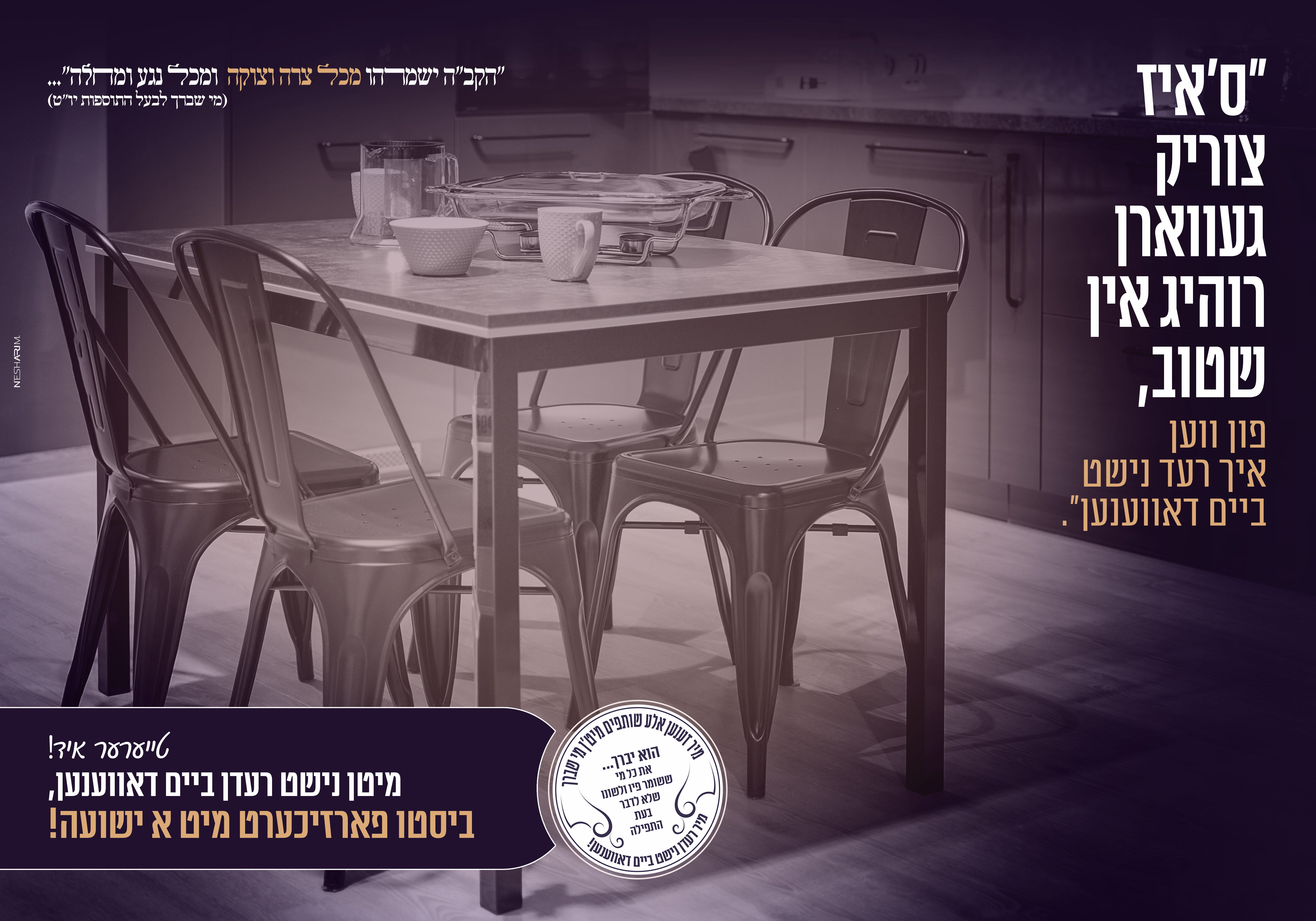 אבל הצבעים (בעיקר של התמונה) נותנים קונוטציה שלילית של וועד הרבנים... נראה במבט ראשון מטבח מדכא מתוך קמפיין תרומות.