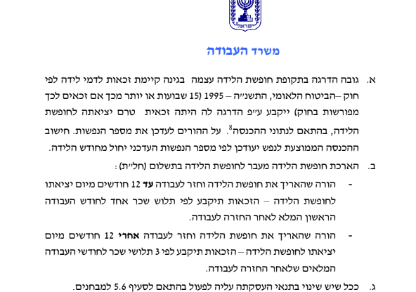 ב. חזרה לעבודה מחל"ת אחרי לידה )סעיף 5.4.1.8 לעיל(, ובלבד שההורה