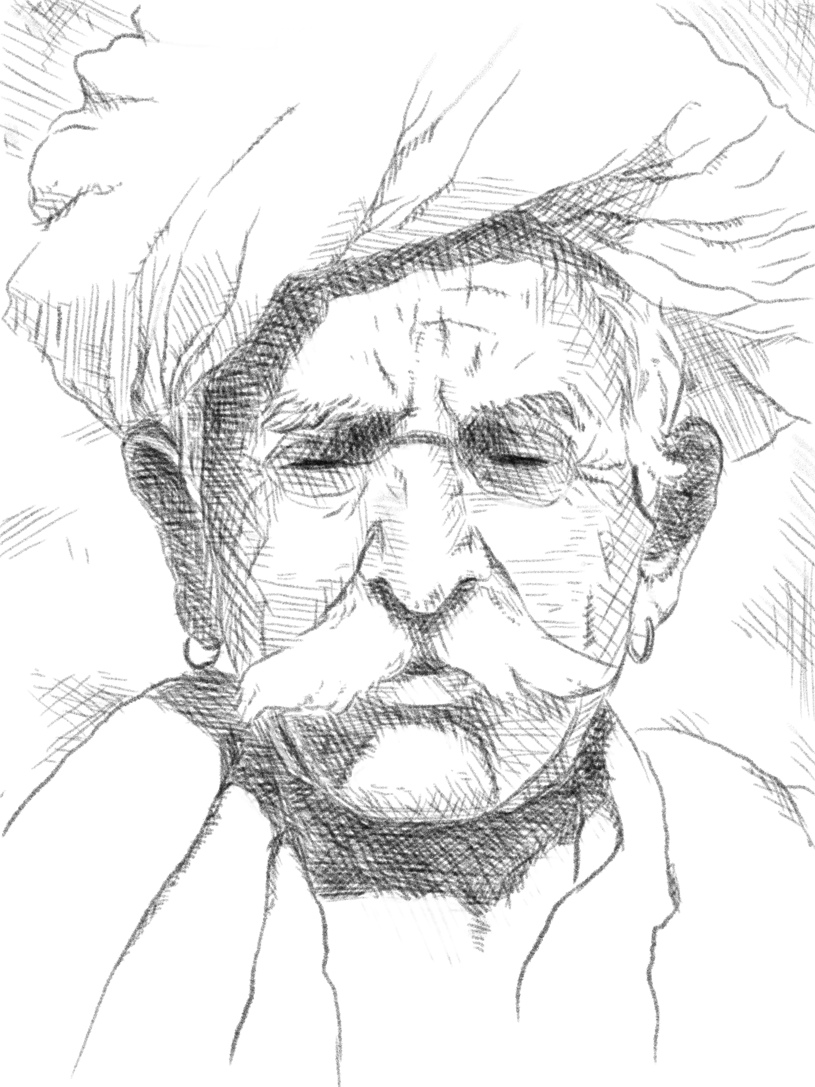 -שיטת העבודה פה היתה להעתיק תמונה על תמונה את הדמות, ואז להצליל אותה מהעתקה כלומר לפי העין.