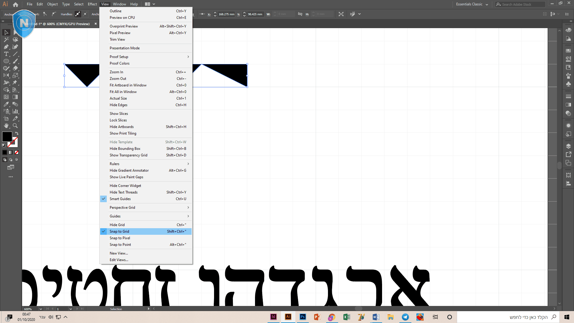 אפשר לעשות גריד, סנפט טו גריד, ואז עם הפנטול