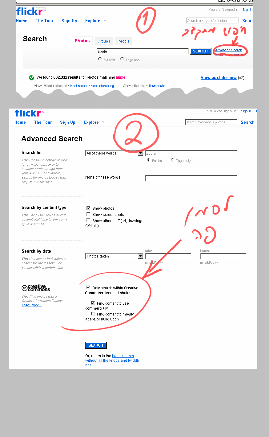 כאשר עושים חיפוש על תמונה מסויימת צריך להכנס לחיפוש מתקדם
