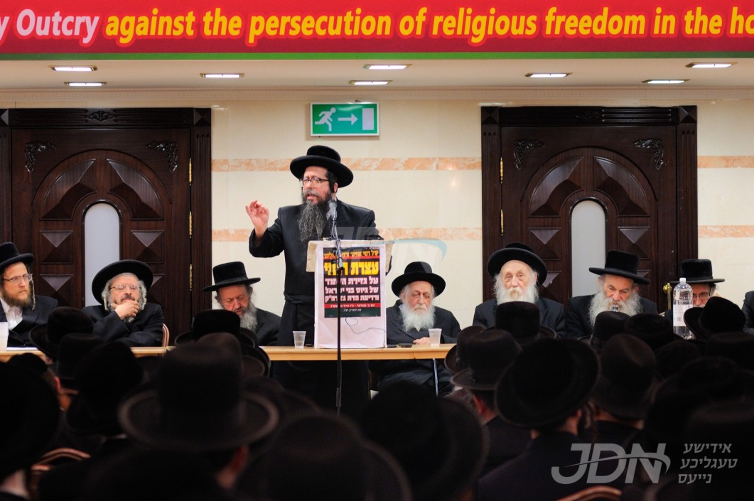 בעצרת מחאה על גזירת החינוך הענגלאנד